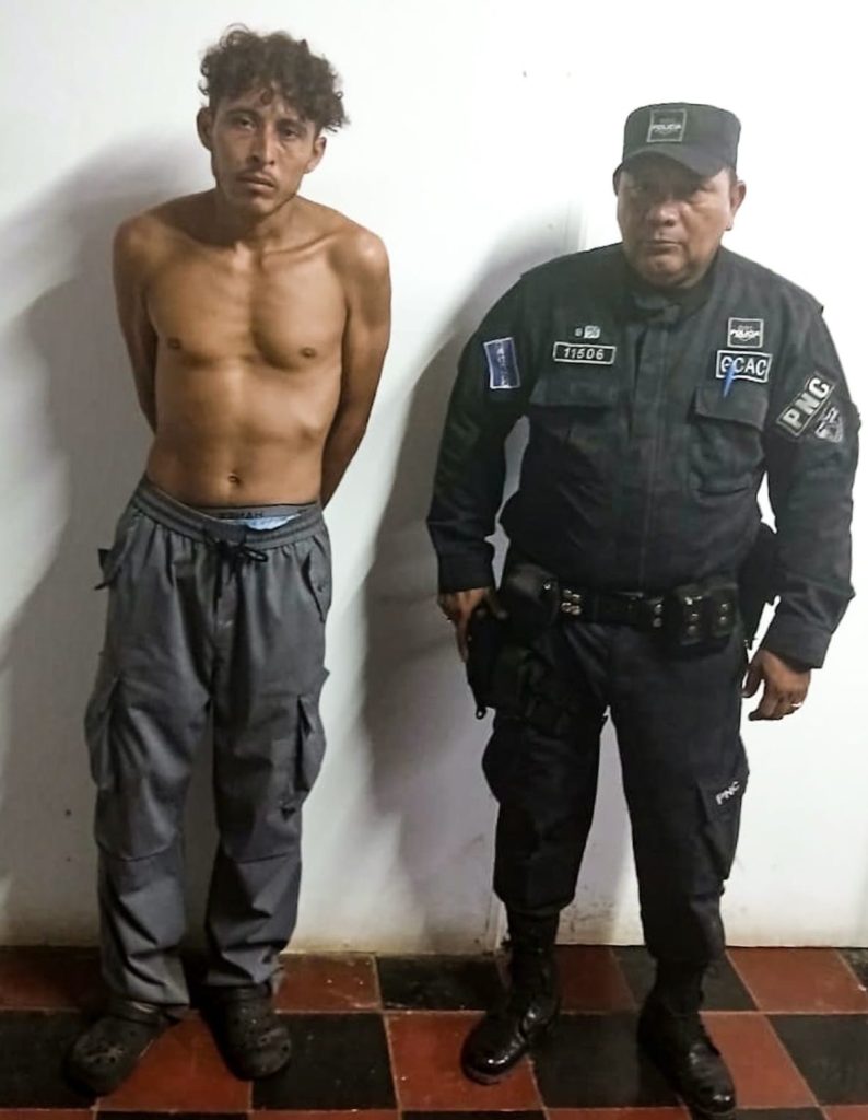 La Policía Nacional Civil (PNC) informó que ante un caso de violencia por parte de un sujeto en estado de ebriedad reportado en una localidad de San Vicente, ubicó y aprehendió a un sospechoso que mantuvó cautivo a sus familiares mediante una arma blanca.